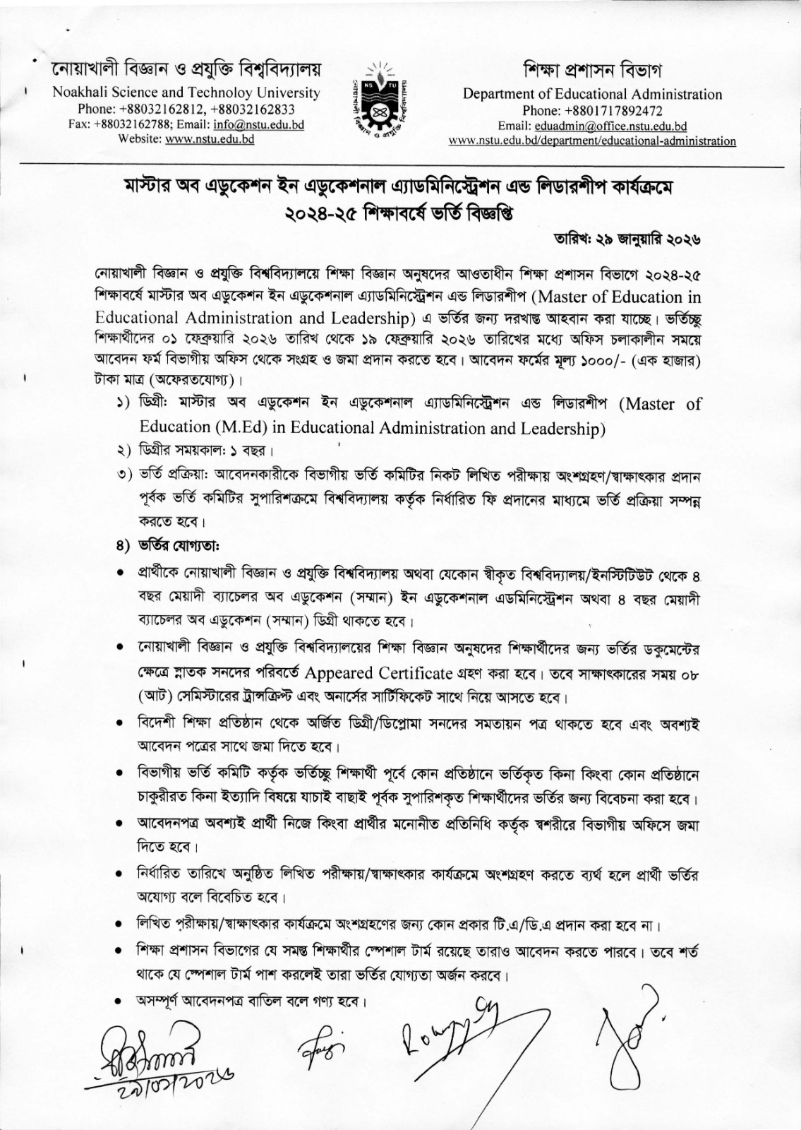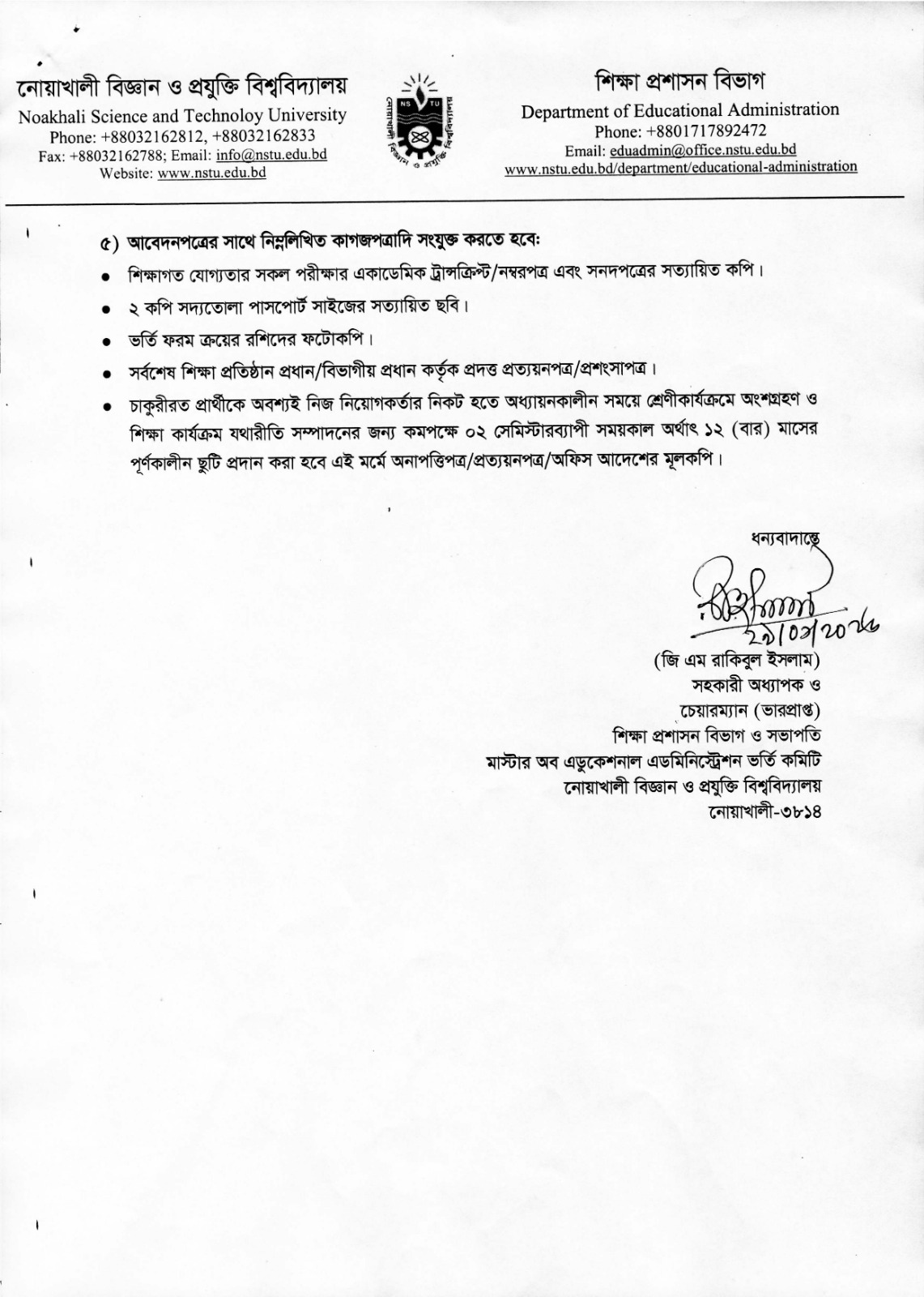 | MS in Disaster Management Admission Circular 2025-26 | 19/01/2026 |