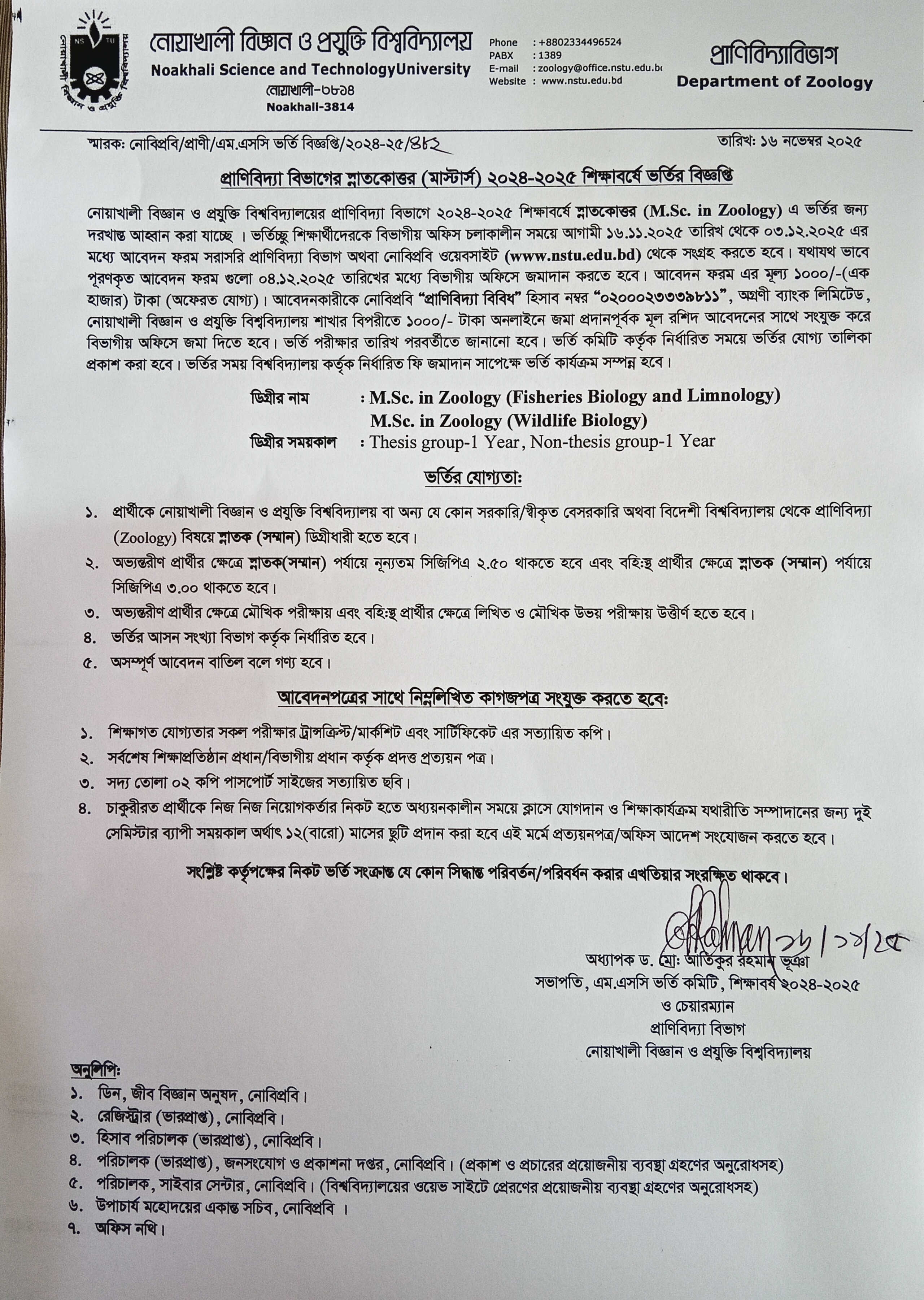 | প্রাণিবিদ্যা বিভাগের স্নাতকোত্তর (মাস্টার্স) ২০২৪-২৫ শিক্ষাবর্ষে ভর্তির বিজ্ঞপ্তি। | 17/11/2025 |